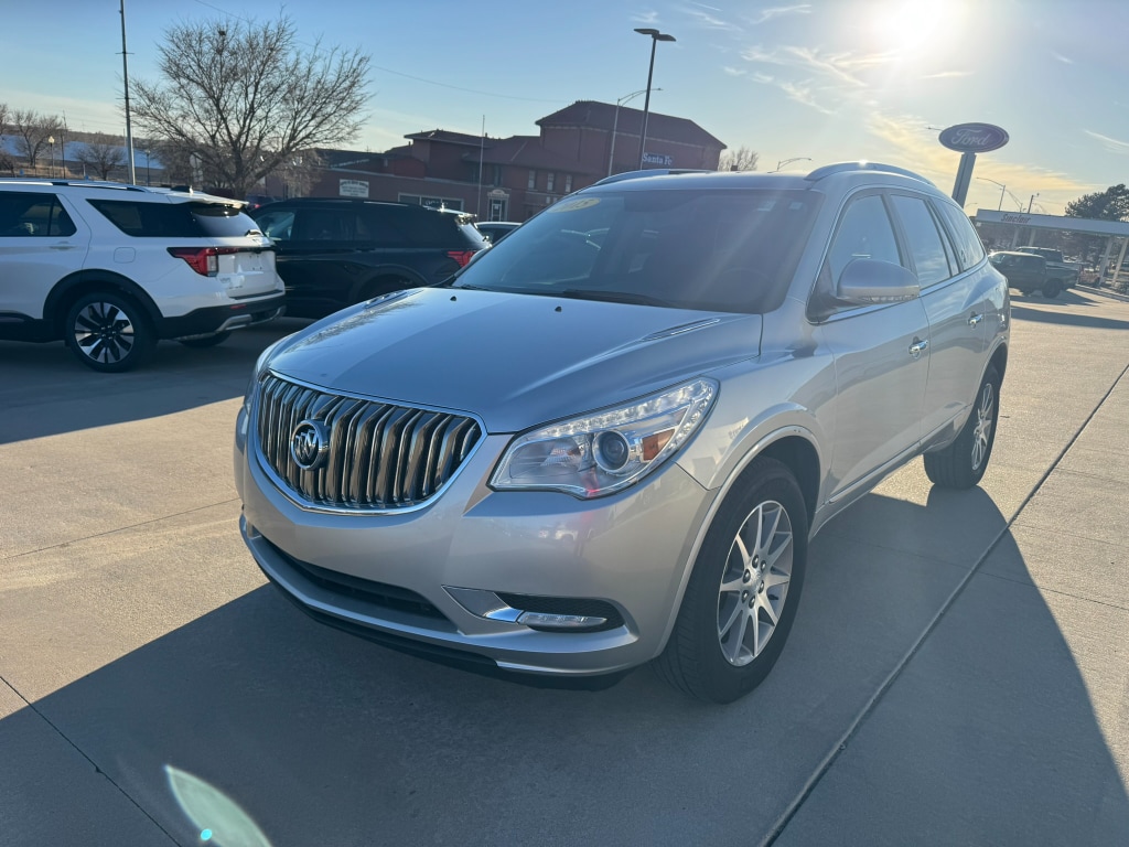 2015 Buick Enclave Leather AWD â" Spacious luxury, rugged capability, and the best price in Dodge City, KS. This meticulously maintained Buick Enclave pairs a smooth 3.6L V6 gasoline engine with an automatic transmission and all-wheel drive for confident performance in all seasons. The Leather trim surrounds passengers in comfort and style, offering roomy third-row seating and premium materials ideal for family trips or executive errands.