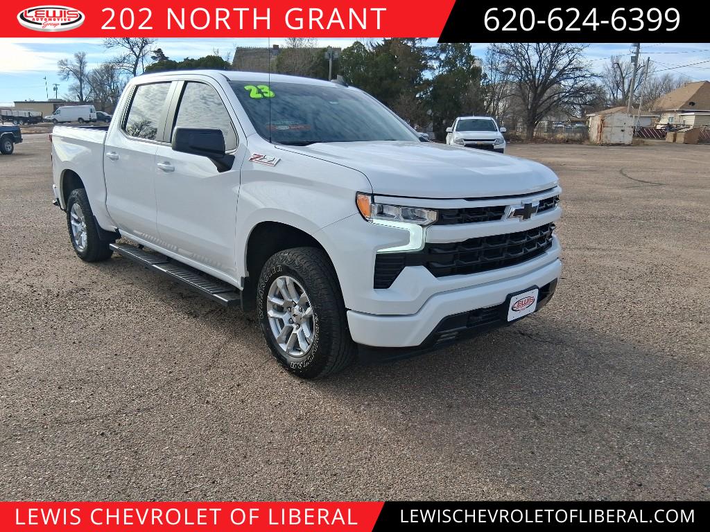 An off-road package is equipped on this model. This unit's Lane Departure Warning keeps you safe by alerting you when you drift from your lane. See what's behind you with the back up camera on this vehicle. This unit offers Apple CarPlay for seamless connectivity. The Chevrolet Silverado is equipped with the latest generation of XM/Sirius Radio. Start this vehicle from inside with remote start. This 1/2 ton pickup features steering wheel audio controls. Lane Keep Assist in it helps maintain safe driving by gently steering to stay within the lane. It offers Android Auto for seamless smartphone integration. This vehicle is pure luxury with a heated steering wheel. It features a hands-free Bluetooth phone system. It keeps you comfortable with Auto Climate. This model shines with clean polished lines coated with an elegant white finish. This unit is outfitted with an OnStar communication system. With the keyless entry system on this 2023 Chevrolet Silverado 1500 you can pop the trunk without dropping your bags from the store.