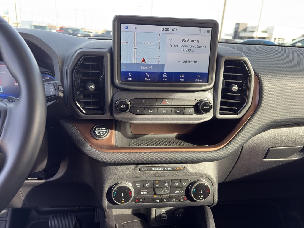 The rear parking assist technology on this unit will put you at ease when reversing. The system alerts you as you get closer to an obstruction. The installed navigation system will keep you on the right path. The vehicle features a hands-free Bluetooth phone system. Start this vehicle from inside with remote start. Keep your hands warm all winter with a heated steering wheel in this unit . This vehicle is equipped with the latest generation of XM/Sirius Radio. The leather seats in this vehicle are a must for buyers looking for comfort, durability, and style. See what's behind you with the back up camera on it. It offers Android Auto for seamless smartphone integration. Apple CarPlay: Seamless smartphone integration for the Ford Bronco Sport - stay connected and entertained on the go! An off-road package is installed on this mid-size suv so you are ready for your four-wheeling best.